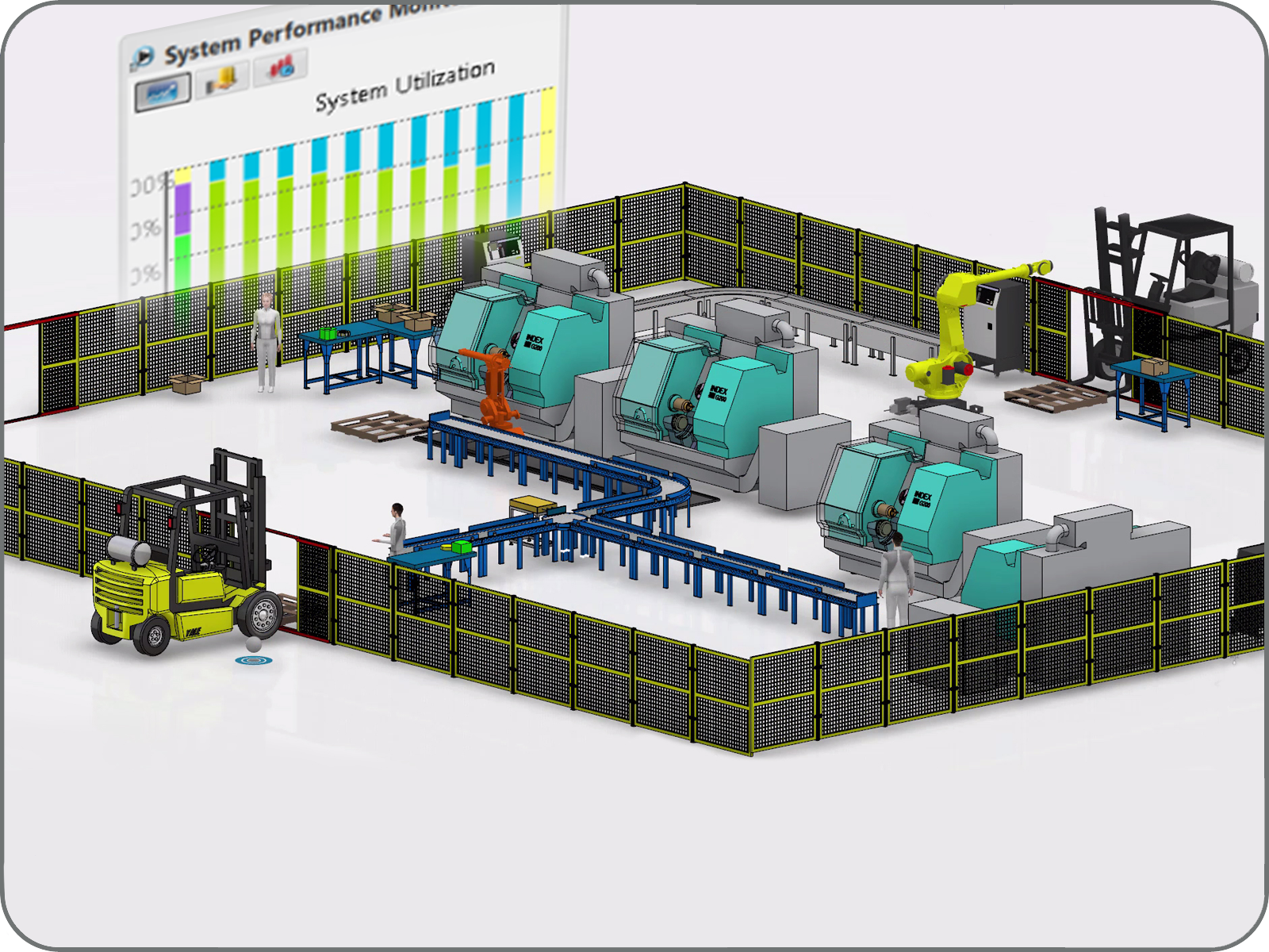 - ด้วยระบบการผลิตแบบเสมือนจริงที่จำลองขึ้นมาได้อย่างถูกต้อง จะแสดงกระบวนการผลิตแบบ Real time ทำให้เห็นถึงการเปลี่ยนแปลงของกระบวนการผลิต ซึ่งจะเป็นการเพิ่มแนวความคิดเพื่อการปรับปรุงสิ่งใหม่ ๆ นอกจากนี้ยังมีตารางแสดงงานซ่อมบำรุงตามเวลาอีกด้วย