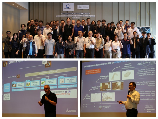 (7 ตุลาคม 2025) ซิกมาโซลูชั่นส์ ร่วมกับ Dassault Systèmes จัดสัมมนาเพื่อสร้างความรู้ความเข้าใจให้แก่ลูกค้าและผู้สนใจในฐานะซัพพลายเออร์ของบริษัทผู้ผลิต (OEMs) ซึ่งกำลังทยอยเปลี่ยนแปลงด้วยการนำเอาเทคเทคโนโลยีต่าง ๆ เข้ามาเชื่อมต่อกับเทคโนโลยีปัญญาประดิษฐ์ (AI) เพื่อเตรียมความพร้อมในการปรับตัวเพื่อทำงานร่วมกัน ยกตัวอย่างอุตสาหกรรมรถยนต์ที่ได้มีการนำแพลตฟอร์ม 3DEXPERIENCE มาใช้ร่วมกับซอฟต์แวร์ CAD / CAE คำถามคือ ทำไมซัพพลายเออร์ทั้งขนาดเล็ก กลาง และใหญ่ จึงต้องทยอยเปลี่ยนมาใช้แพลตฟอร์มเดียวกันกับผู้ผลิต จำเป็นแค่ไหน เปลี่ยนแล้วได้อะไร ดังนั้นการทำความเข้าใจจึงเป็นสิ่งสำคัญต่อการตัดสินใจว่าหากยังคงรูปแบบเดิมไว้ในเวอร์ชันที่แตกต่างกันจะมีข้อจำกัดใดบ้าง รวมถึงการเรียนรู้และเปิดโลกทัศน์ใหม่ที่ผสานรวมกระบวนการ Modeling (การสร้างแบบจำลอง) และ Simulation (การจำลองและวิเคราะห์) เข้าด้วยกันอย่างสมบูรณ์แบบบนแพลตฟอร์มเดียวกัน โดยมีความท้าทายและเป้าหมายที่ต้องเผชิญ เพื่อการสร้างสรรค์นวัตกรรมออกสู่ตลาดอย่างสม่ำเสมอและลดต้นทุนได้ในเวลาเดียวกัน งานมีขึ้นที่ ห้อง Lan-Na, Bagan ชั้น 1 โรงแรมไฮแอท รีเจนซี่ กรุงเทพ สุวรรณภูมิ แอร์พอร์ต